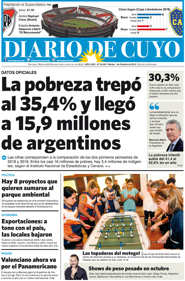 Diario de Cuyo | HOME | Noticias | Tapa Edición Tapa Edición 1 de Octubre 2019 Por Redacción Diario de Cuyo 30/09/2019 · 0:00 Escuchar la noticia Escuchar la noticia Your browser doesn’t support HTML5 audio Tapa Edición Ver los comentarios ›