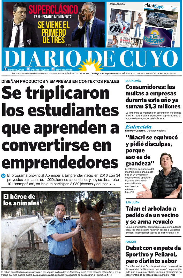 Diario de Cuyo | HOME | Noticias | Tapa Edición Tapa Edición 1 de Septiembre de 2019 Por Redacción Diario de Cuyo 31/08/2019 · 0:00 Escuchar la noticia Escuchar la noticia Your browser doesn’t support HTML5 audio Tapa Edición Ver los comentarios ›