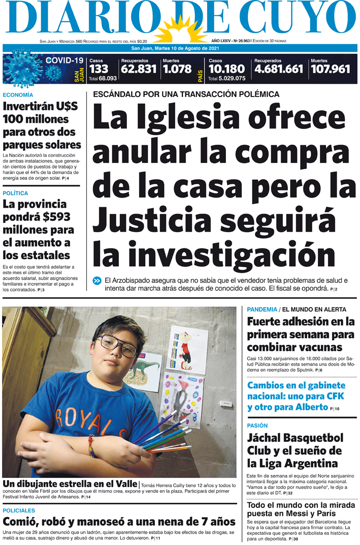 Diario de Cuyo | HOME | Noticias Tapa Edición 10 de Agosto del 2021 Por Redacción Diario de Cuyo 09/08/2021 · 0:00 Escuchar la noticia Escuchar la noticia Your browser doesn’t support HTML5 audio Ver los comentarios ›
