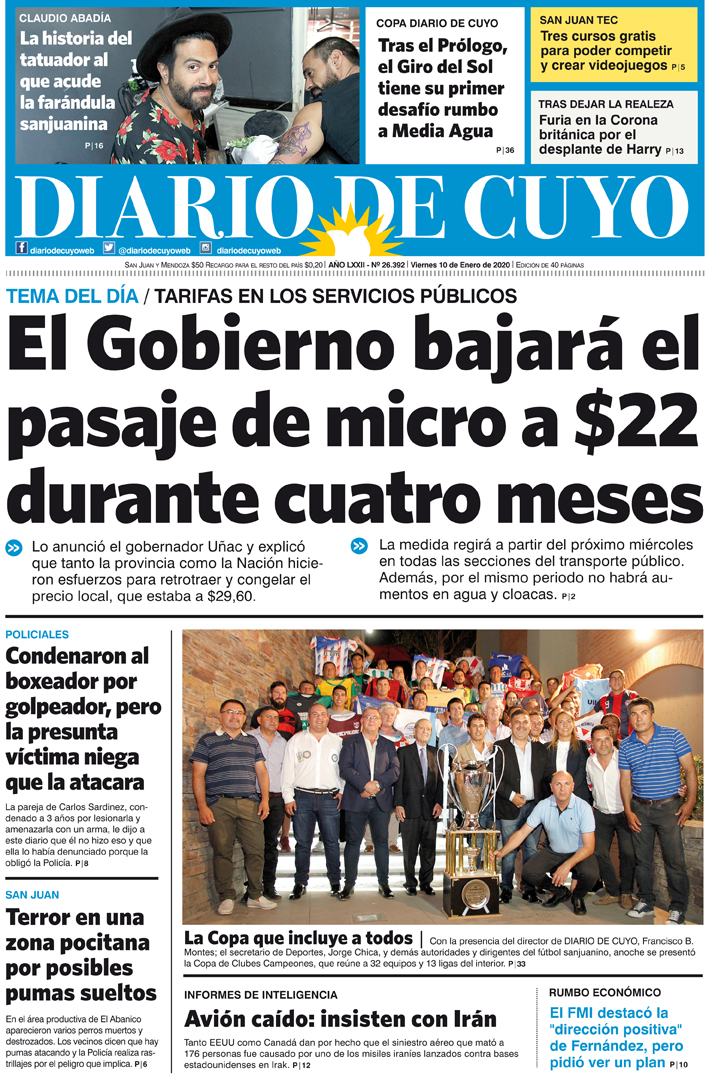 Diario de Cuyo | HOME | Noticias | Tapa Edición Tapa Edición 10 de Enero 2020 Por Redacción Diario de Cuyo 09/01/2020 · 0:00 Escuchar la noticia Escuchar la noticia Your browser doesn’t support HTML5 audio Tapa Edición Ver los comentarios ›