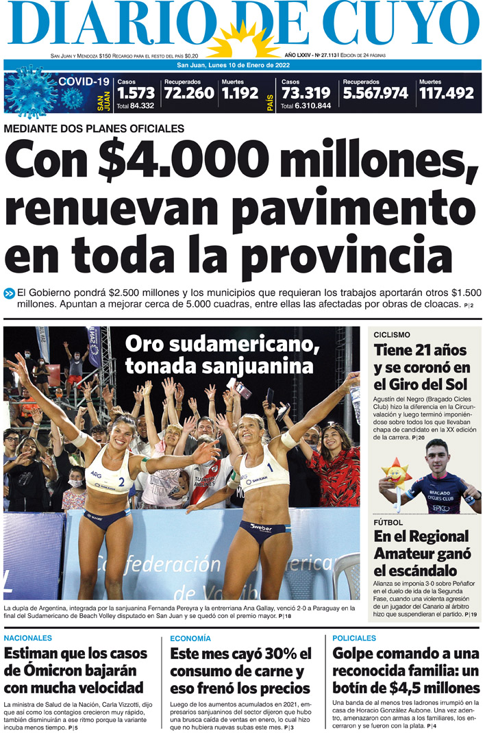 Diario de Cuyo | HOME | Noticias Tapa Edición 10 de Enero del 2022 Por Redacción Diario de Cuyo 10/01/2022 · 0:00 Escuchar la noticia Escuchar la noticia Your browser doesn’t support HTML5 audio Ver los comentarios ›