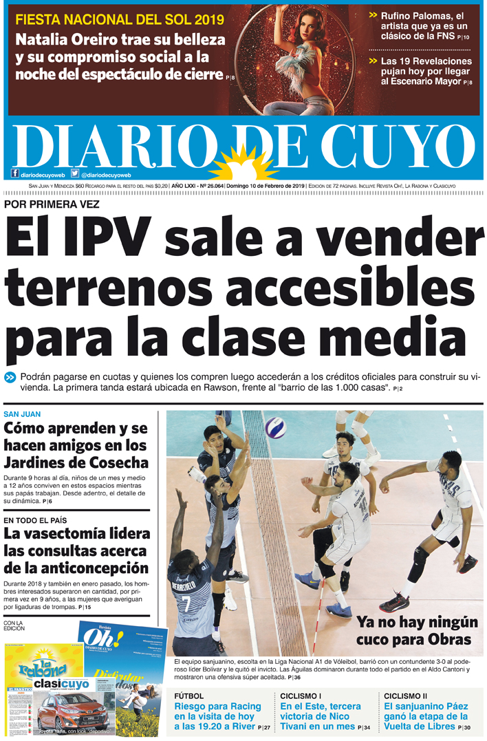 Diario de Cuyo | HOME | Noticias | Tapa Edición Tapa Edición 10 de Febrero 2019 Por Redacción Diario de Cuyo 09/02/2019 · 0:00 Escuchar la noticia Escuchar la noticia Your browser doesn’t support HTML5 audio Tapa Edición Ver los comentarios ›