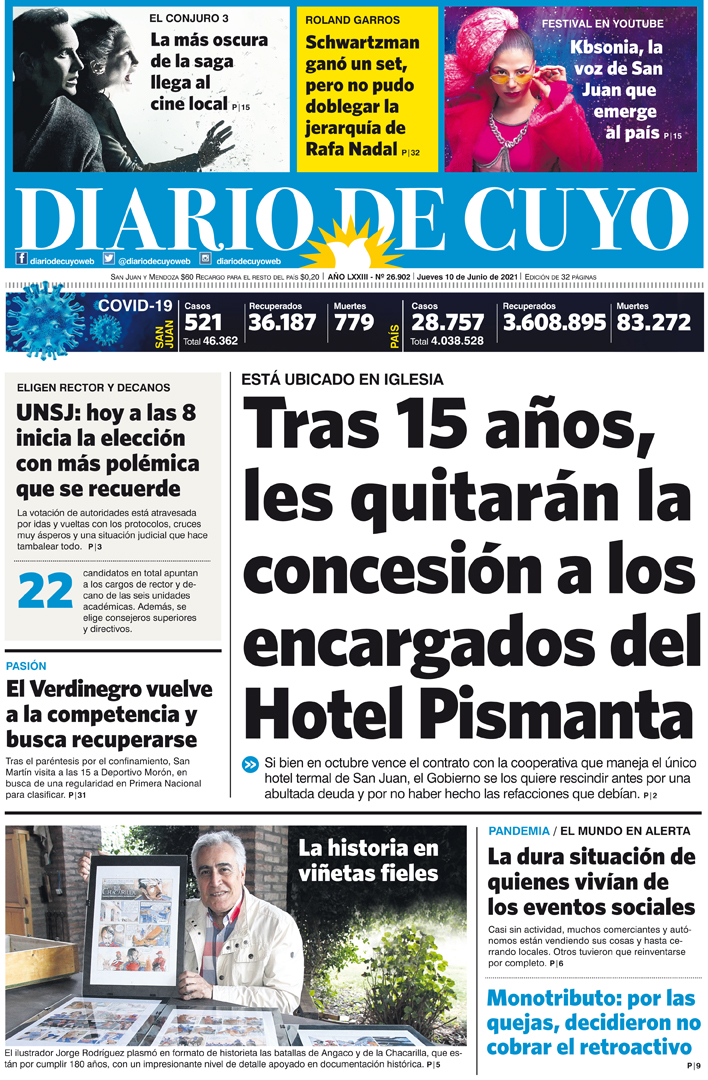 Diario de Cuyo | HOME | Noticias Tapa Edición 10 de Junio del 2021 Por Redacción Diario de Cuyo 09/06/2021 · 0:00 Escuchar la noticia Escuchar la noticia Your browser doesn’t support HTML5 audio Ver los comentarios ›