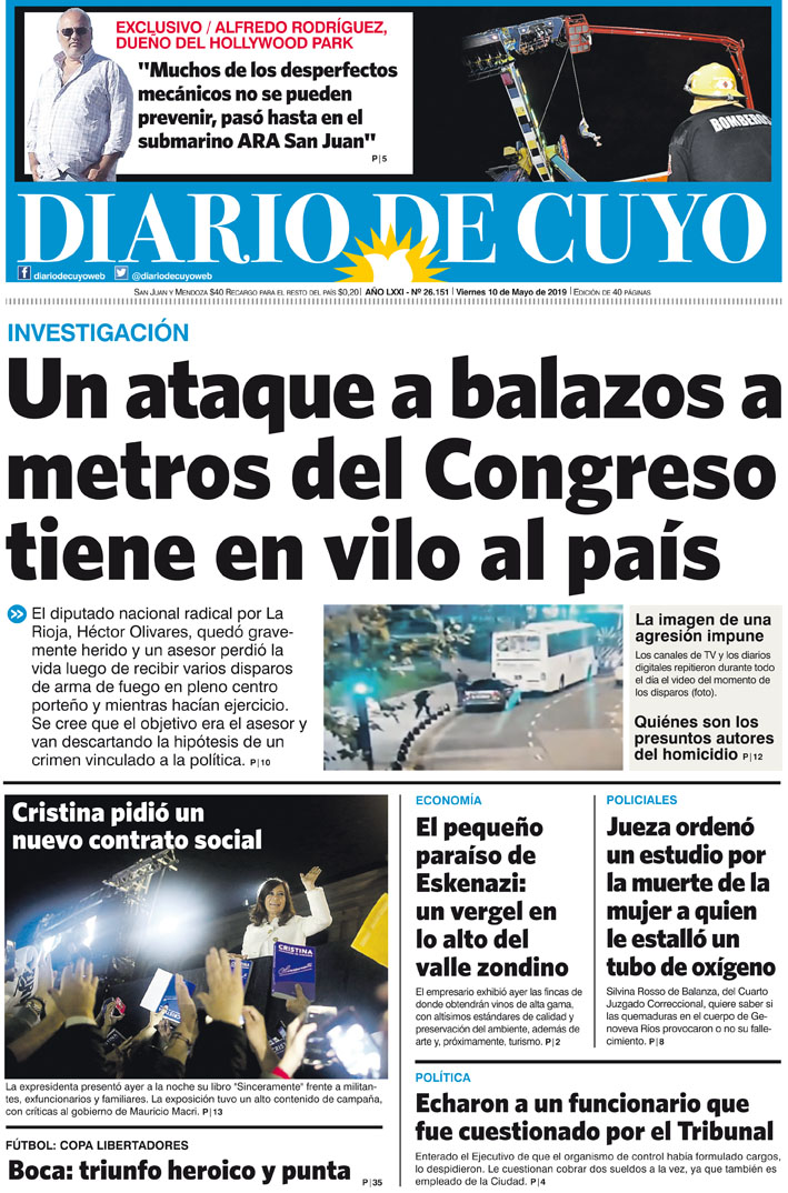 Diario de Cuyo | HOME | Noticias | Tapa Edición Tapa Edición 10 de Mayo de 2019 Por Redacción Diario de Cuyo 09/05/2019 · 0:00 Escuchar la noticia Escuchar la noticia Your browser doesn’t support HTML5 audio Tapa Edición Ver los comentarios ›
