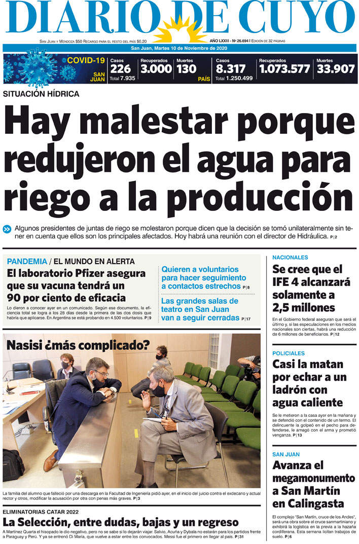 Diario de Cuyo | HOME | Noticias Tapa Edición 10 de Noviembre del 2020 Por Redacción Diario de Cuyo 09/11/2020 · 0:00 Escuchar la noticia Escuchar la noticia Your browser doesn’t support HTML5 audio Ver los comentarios ›