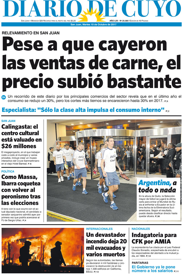Diario de Cuyo | HOME | Noticias Tapa Edición 10 de Octubre de 2017 Por Redacción Diario de Cuyo 09/10/2017 · 0:00 Escuchar la noticia Escuchar la noticia Your browser doesn’t support HTML5 audio Ver los comentarios ›