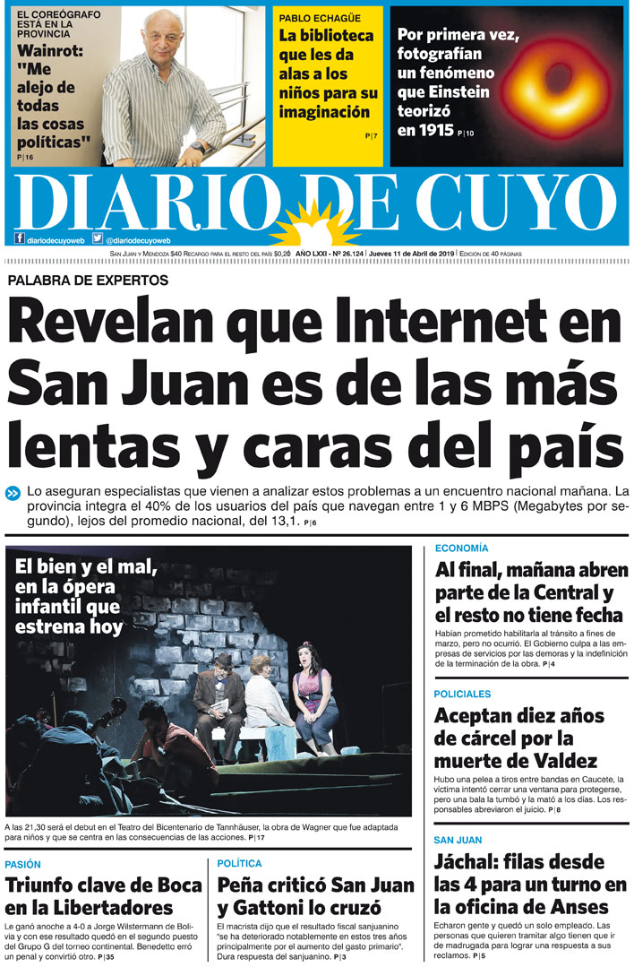 Diario de Cuyo | HOME | Noticias | Tapa Edición Tapa Edición 11 de Abril 2019 Por Redacción Diario de Cuyo 10/04/2019 · 0:00 Escuchar la noticia Escuchar la noticia Your browser doesn’t support HTML5 audio Tapa Edición Ver los comentarios ›