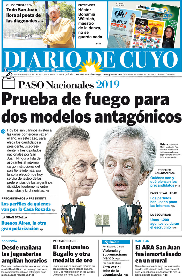 Diario de Cuyo | HOME | Noticias | Tapa Edición Tapa Edición 11 de Agosto de 2019 Por Redacción Diario de Cuyo 10/08/2019 · 0:00 Escuchar la noticia Escuchar la noticia Your browser doesn’t support HTML5 audio Tapa Edición Ver los comentarios ›