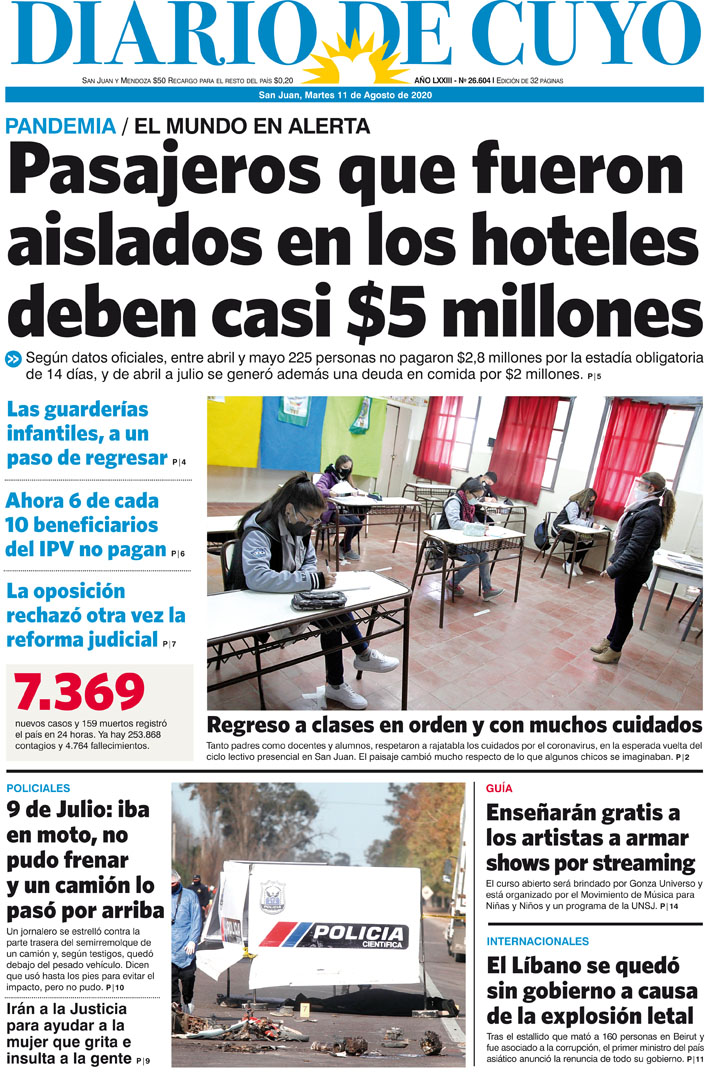 Diario de Cuyo | HOME | Noticias Tapa Edición 11 de Agosto del 2020 Por Redacción Diario de Cuyo 10/08/2020 · 0:00 Escuchar la noticia Escuchar la noticia Your browser doesn’t support HTML5 audio Ver los comentarios ›