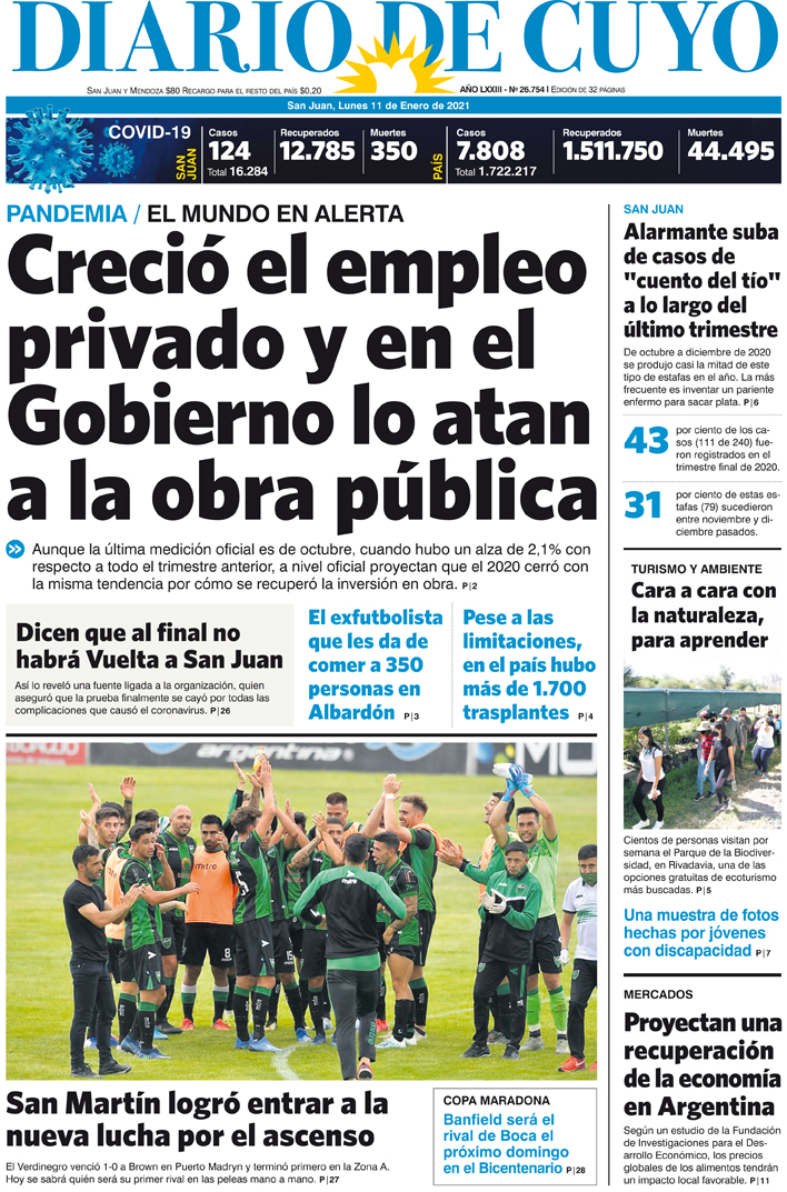 Diario de Cuyo | HOME | Noticias | Tapa Edición Tapa Edición 11 de Enero de 2021 Por Redacción Diario de Cuyo 10/01/2021 · 0:00 Escuchar la noticia Escuchar la noticia Your browser doesn’t support HTML5 audio Tapa Edición Ver los comentarios ›