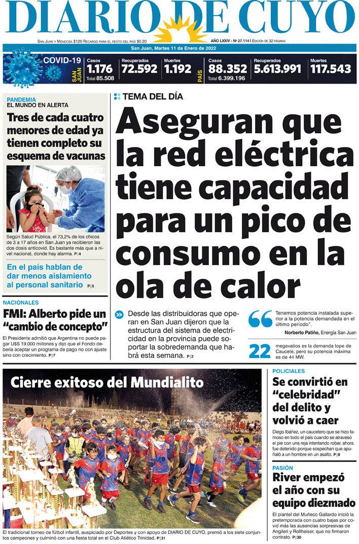 Diario de Cuyo | HOME | Noticias Tapa Edición 11 de Enero del 2022 Por Redacción Diario de Cuyo 10/01/2022 · 0:00 Escuchar la noticia Escuchar la noticia Your browser doesn’t support HTML5 audio Ver los comentarios ›