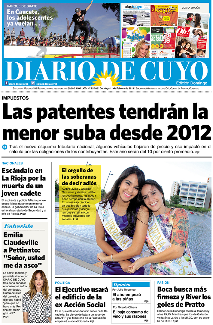 Diario de Cuyo | HOME | Noticias | Tapa Edición Tapa Edición 11 de Febrero del 2018 Por Redacción Diario de Cuyo 10/02/2018 · 0:00 Escuchar la noticia Escuchar la noticia Your browser doesn’t support HTML5 audio Tapa Edición Ver los comentarios ›