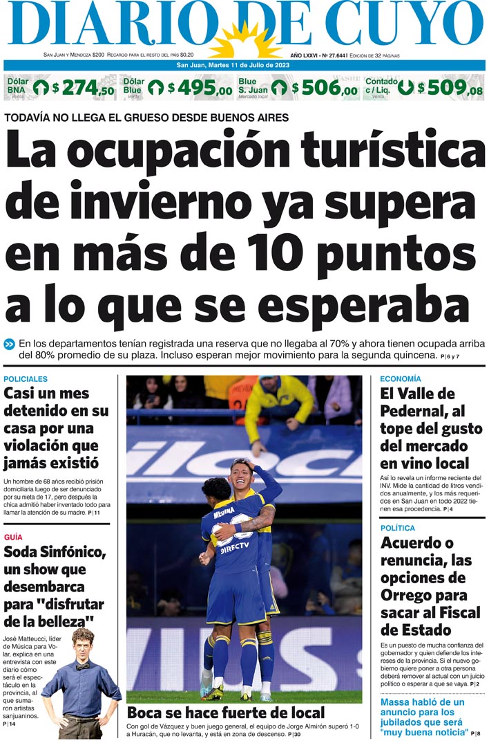 Diario de Cuyo | HOME | Noticias Tapa Edición 11 de Julio del 2023 Por Redacción Diario de Cuyo 11/07/2023 · 0:00 Escuchar la noticia Escuchar la noticia Your browser doesn’t support HTML5 audio Ver los comentarios ›