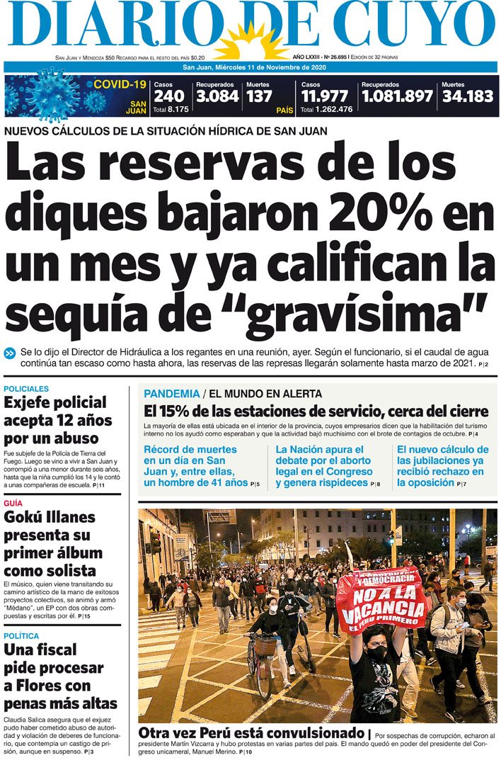 Diario de Cuyo | HOME | Noticias Tapa Edición 11 de Noviembre del 2020 Por Redacción Diario de Cuyo 10/11/2020 · 0:00 Escuchar la noticia Escuchar la noticia Your browser doesn’t support HTML5 audio Ver los comentarios ›