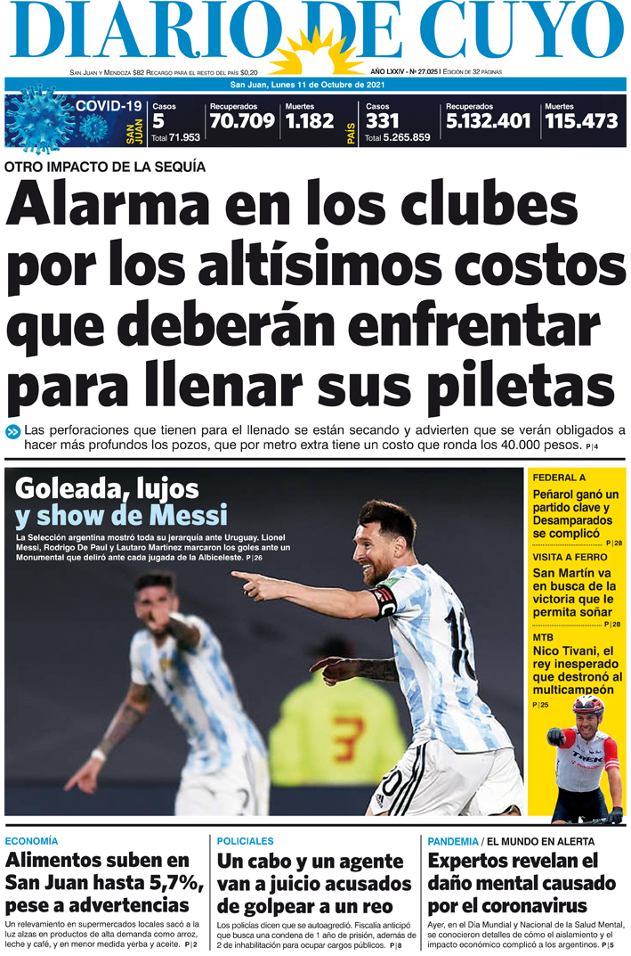 Diario de Cuyo | HOME | Noticias | Tapa Edición Tapa Edición 11 de Octubre de 2021 Por Redacción Diario de Cuyo 10/10/2021 · 0:00 Escuchar la noticia Escuchar la noticia Your browser doesn’t support HTML5 audio Tapa Edición Ver los comentarios ›