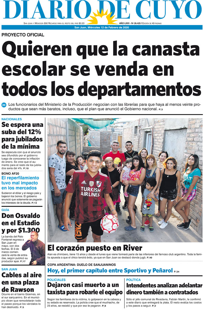 Diario de Cuyo | HOME | Noticias Tapa Edición 12 de Febrero del 2020 Por Redacción Diario de Cuyo 12/02/2020 · 0:00 Escuchar la noticia Escuchar la noticia Your browser doesn’t support HTML5 audio Ver los comentarios ›