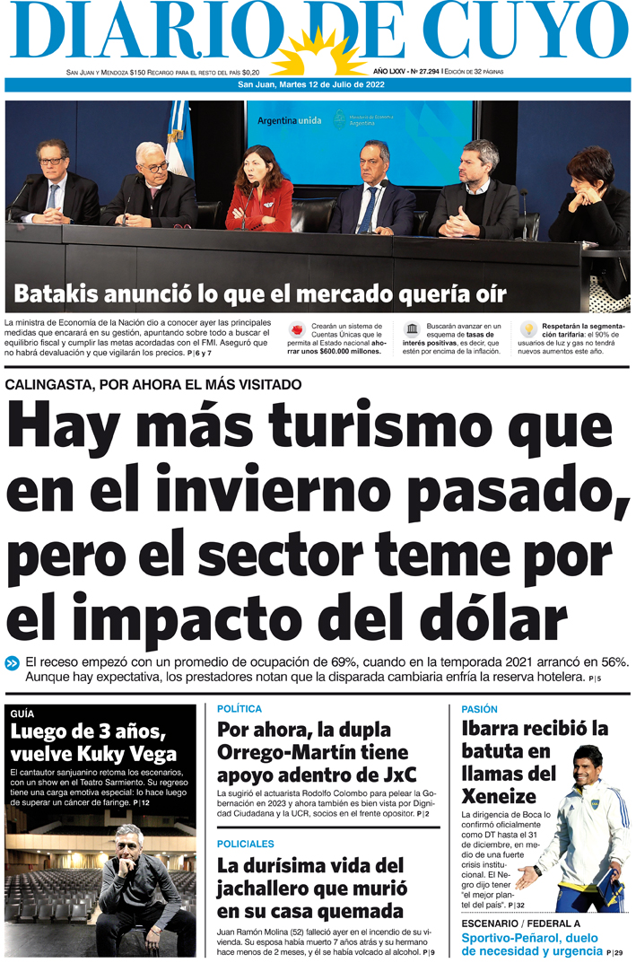 Diario de Cuyo | HOME | Noticias Tapa Edición 12 de Julio del 2022 Por Redacción Diario de Cuyo 11/07/2022 · 0:00 Escuchar la noticia Escuchar la noticia Your browser doesn’t support HTML5 audio Ver los comentarios ›