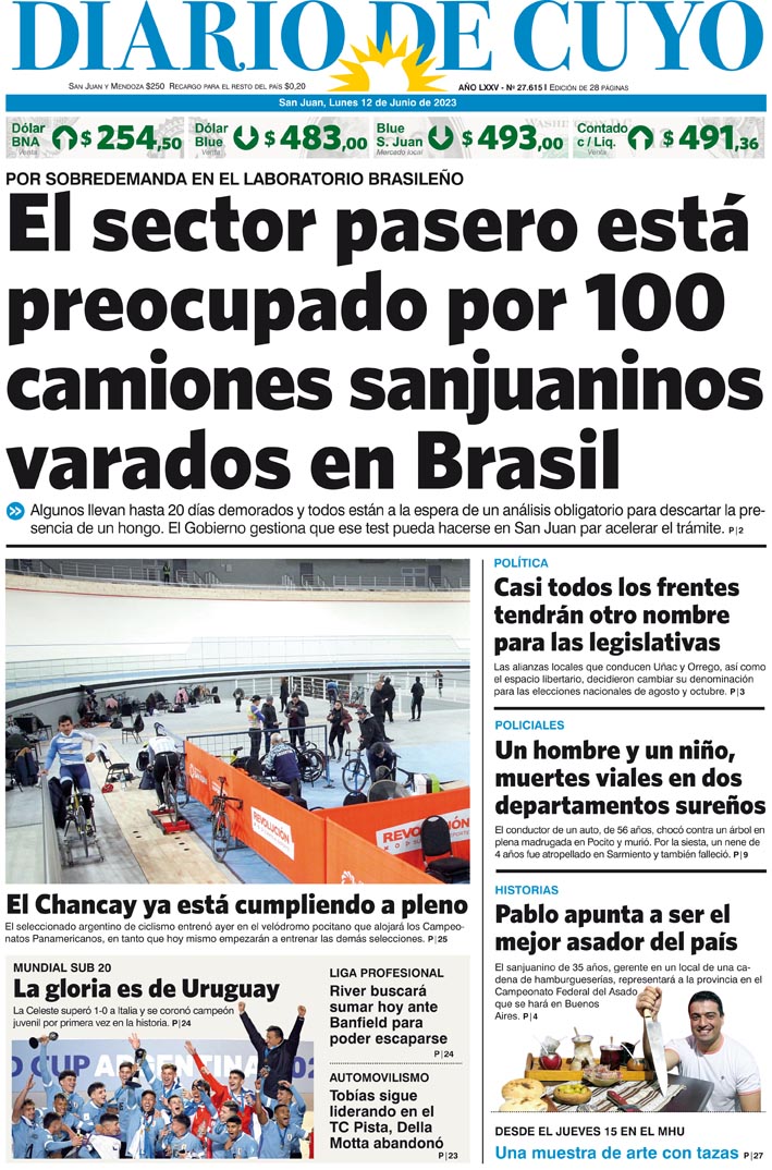 Diario de Cuyo | HOME | Noticias Tapa Edición 12 de Junio del 2023 Por Redacción Diario de Cuyo 11/06/2023 · 0:00 Escuchar la noticia Escuchar la noticia Your browser doesn’t support HTML5 audio Ver los comentarios ›