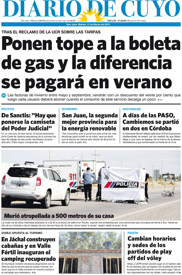 Diario de Cuyo | HOME | Noticias | Tapa Edición Tapa Edición 12 de Marzo 2019 Por Redacción Diario de Cuyo 11/03/2019 · 0:00 Escuchar la noticia Escuchar la noticia Your browser doesn’t support HTML5 audio Tapa Edición Ver los comentarios ›