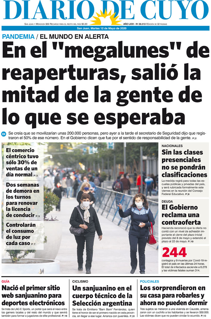 Diario de Cuyo | HOME | Noticias Tapa Edición 12 de Mayo del 2020 Por Redacción Diario de Cuyo 11/05/2020 · 0:00 Escuchar la noticia Escuchar la noticia Your browser doesn’t support HTML5 audio Ver los comentarios ›