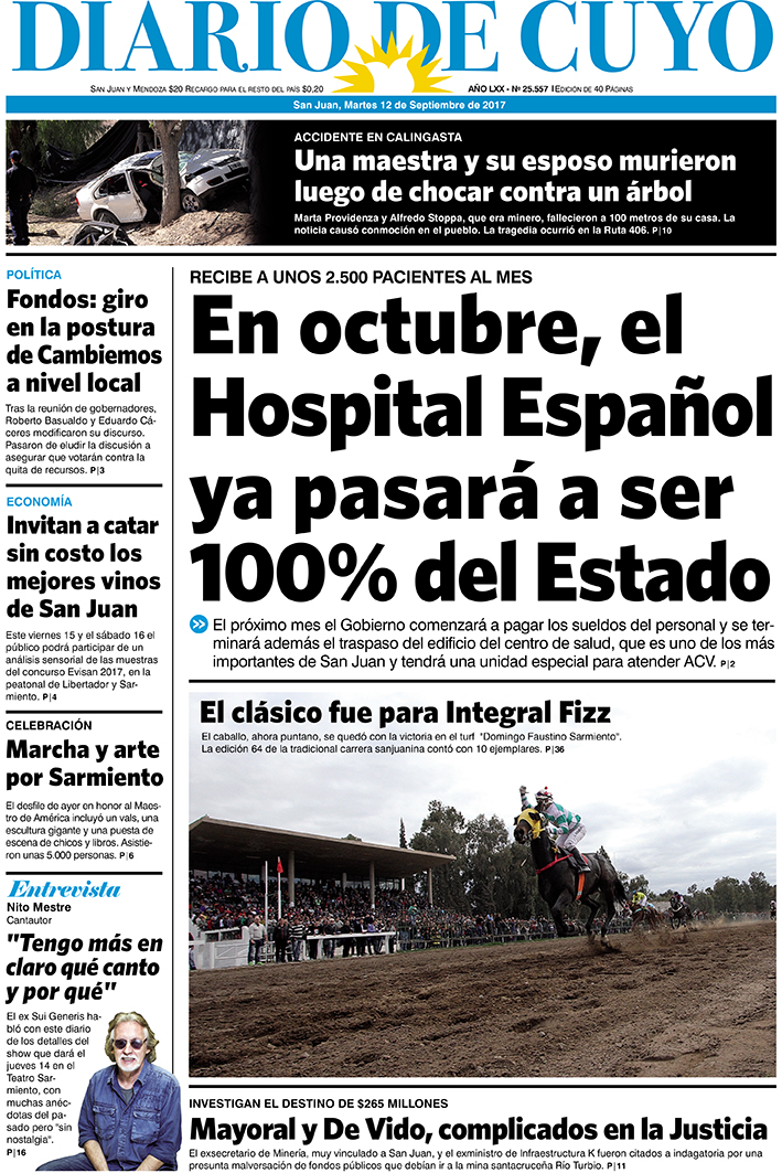 Diario de Cuyo | HOME | Noticias | Tapa Edición Impresa Tapa Edición 12 de Septiembre del 2017 Por Redacción Diario de Cuyo 11/09/2017 · 0:00 Escuchar la noticia Escuchar la noticia Your browser doesn’t support HTML5 audio Tapa Edición Impresa Ver los comentarios ›