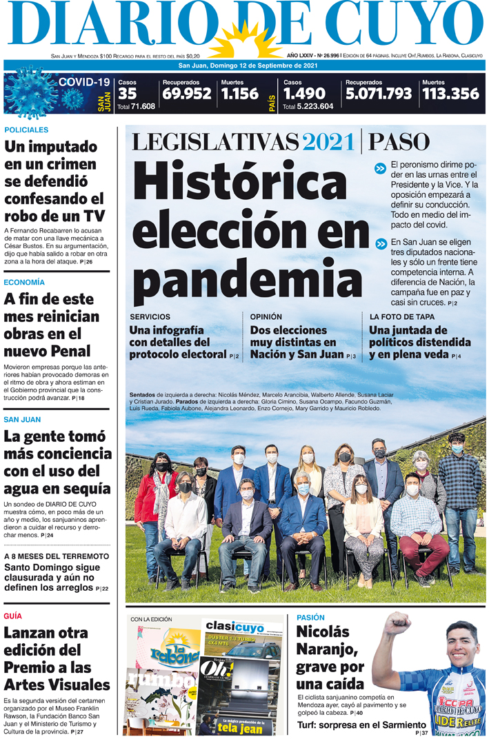 Diario de Cuyo | HOME | Noticias Tapa Edición 12 de Septiembre del 2021 Por Redacción Diario de Cuyo 11/09/2021 · 0:00 Escuchar la noticia Escuchar la noticia Your browser doesn’t support HTML5 audio Ver los comentarios ›