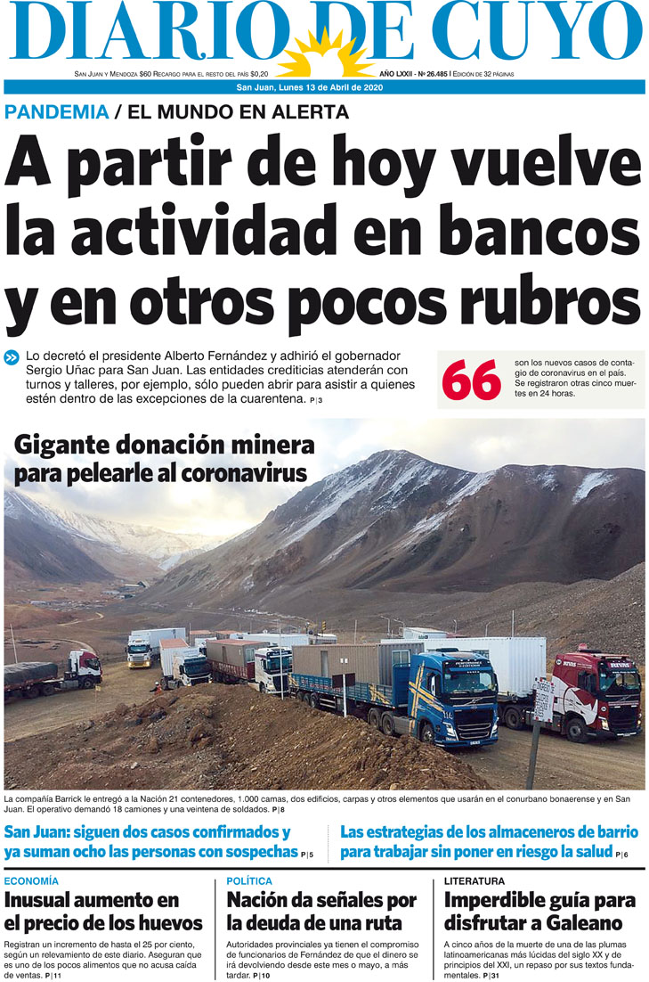 Diario de Cuyo | HOME | Noticias Tapa Edición 13 de Abril del 2020 Por Redacción Diario de Cuyo 12/04/2020 · 0:00 Escuchar la noticia Escuchar la noticia Your browser doesn’t support HTML5 audio Ver los comentarios ›