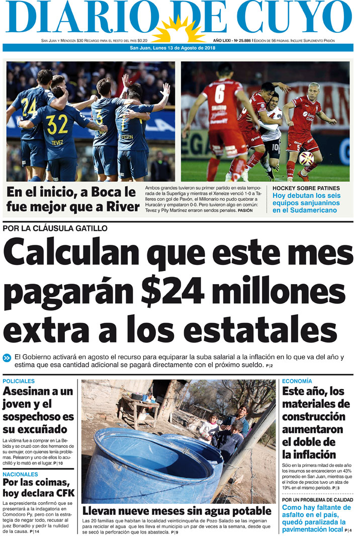 Diario de Cuyo | HOME | Noticias Tapa Edición 13 de Agosto Por Redacción Diario de Cuyo 12/08/2018 · 0:00 Escuchar la noticia Escuchar la noticia Your browser doesn’t support HTML5 audio Ver los comentarios ›