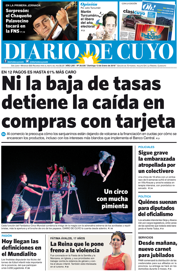 Diario de Cuyo | HOME | Noticias | Tapa Edición Tapa Edición 13 de Enero 2019 Por Redacción Diario de Cuyo 12/01/2019 · 0:00 Escuchar la noticia Escuchar la noticia Your browser doesn’t support HTML5 audio Tapa Edición Ver los comentarios ›