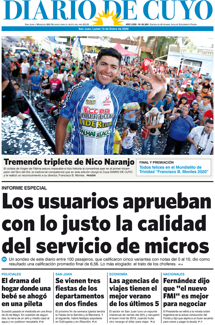 Diario de Cuyo | HOME | Noticias | Tapa Edición Tapa Edición 13 de Enero 2020 Por Redacción Diario de Cuyo 12/01/2020 · 0:00 Escuchar la noticia Escuchar la noticia Your browser doesn’t support HTML5 audio Tapa Edición Ver los comentarios ›