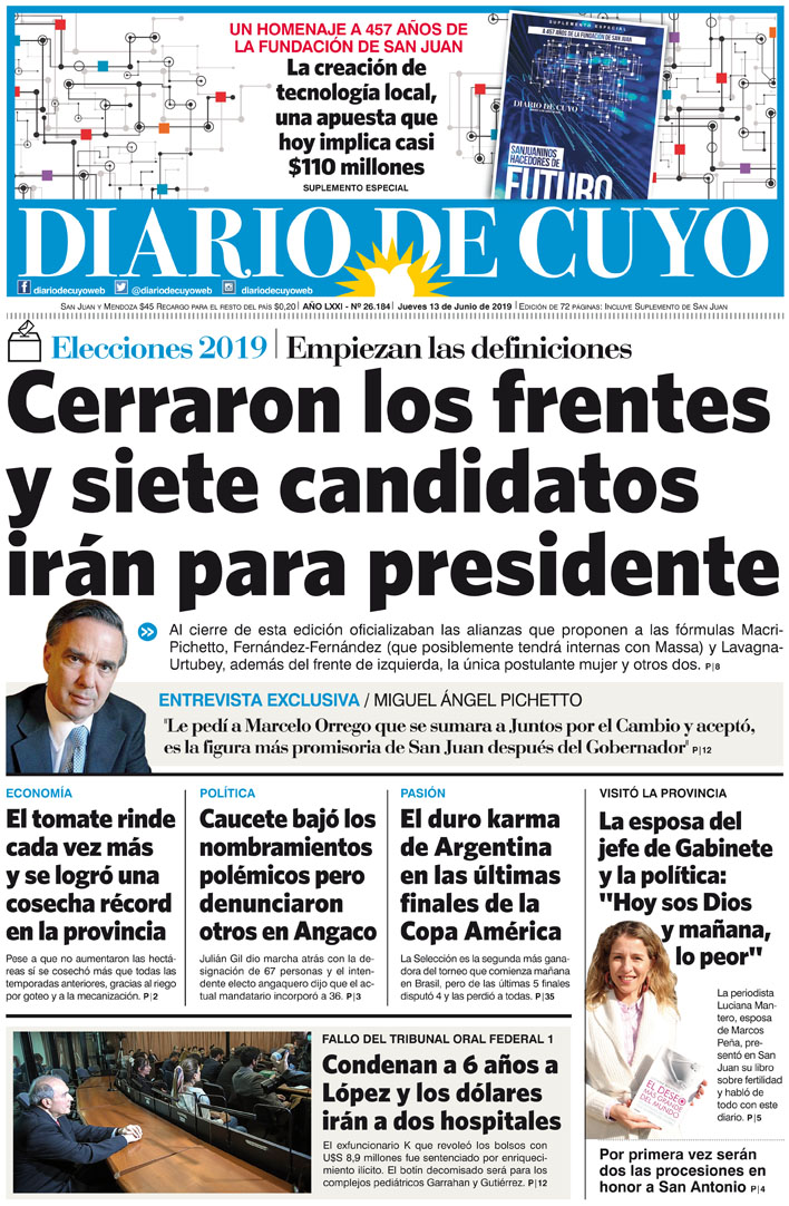 Diario de Cuyo | HOME | Noticias | Tapa Edición Tapa Edición 13 de Junio 2019 Por Redacción Diario de Cuyo 12/06/2019 · 0:00 Escuchar la noticia Escuchar la noticia Your browser doesn’t support HTML5 audio Tapa Edición Ver los comentarios ›