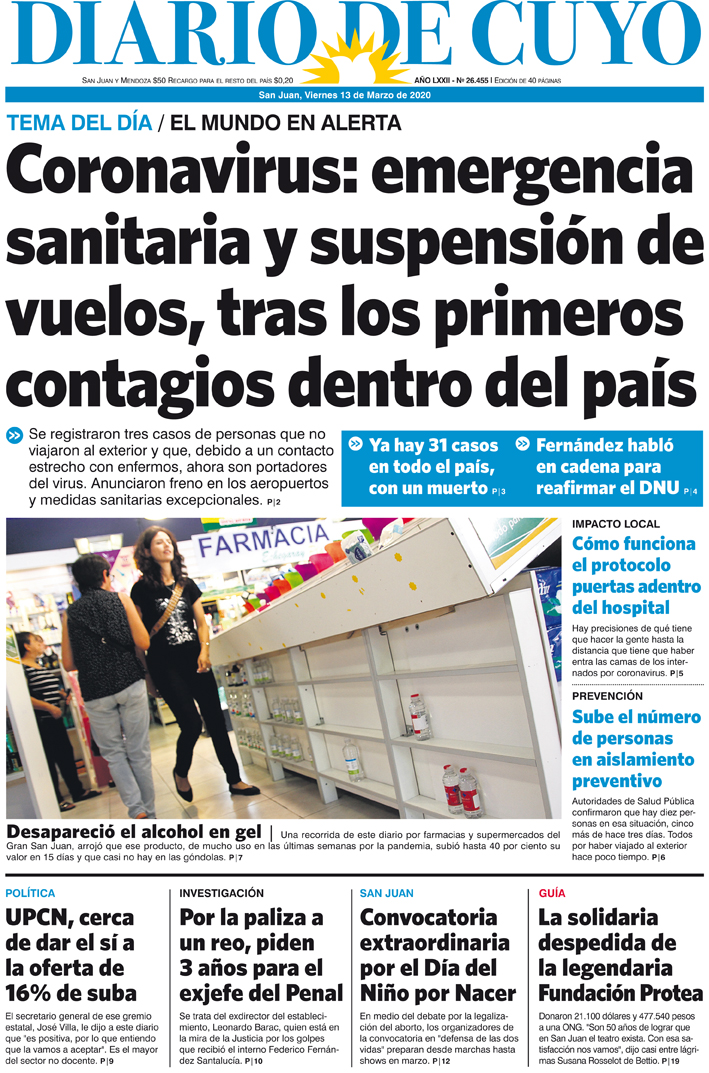 Diario de Cuyo | HOME | Noticias | Tapa Edición Tapa Edición 13 de Marzo de 2020 Por Redacción Diario de Cuyo 12/03/2020 · 0:00 Escuchar la noticia Escuchar la noticia Your browser doesn’t support HTML5 audio Tapa Edición Ver los comentarios ›
