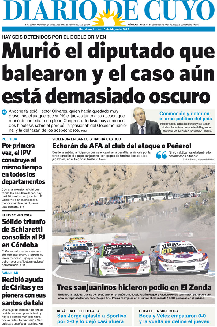 Diario de Cuyo | HOME | Noticias | Tapa Edición Tapa Edición 13 de Mayo 2019 Por Redacción Diario de Cuyo 12/05/2019 · 0:00 Escuchar la noticia Escuchar la noticia Your browser doesn’t support HTML5 audio Tapa Edición Ver los comentarios ›