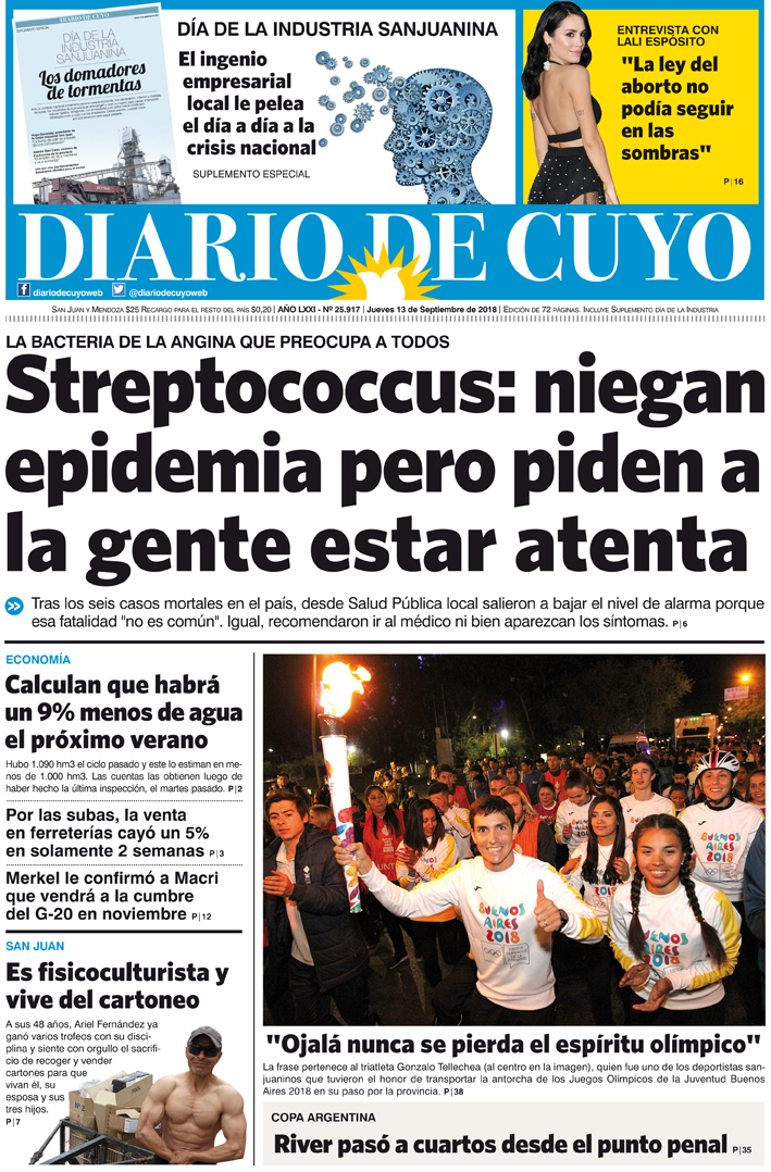 Diario de Cuyo | HOME | Noticias | Tapa Edición Tapa Edición 13 de Septiembre 2018 Por Redacción Diario de Cuyo 12/09/2018 · 0:00 Escuchar la noticia Escuchar la noticia Your browser doesn’t support HTML5 audio Tapa Edición Ver los comentarios ›