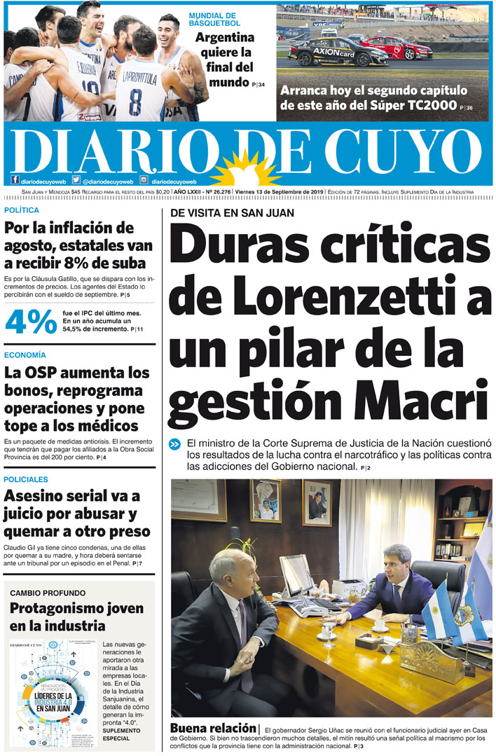 Diario de Cuyo | HOME | Noticias | Tapa Edición Tapa Edición 13 de Septiembre 2019 Por Redacción Diario de Cuyo 12/09/2019 · 0:00 Escuchar la noticia Escuchar la noticia Your browser doesn’t support HTML5 audio Tapa Edición Ver los comentarios ›