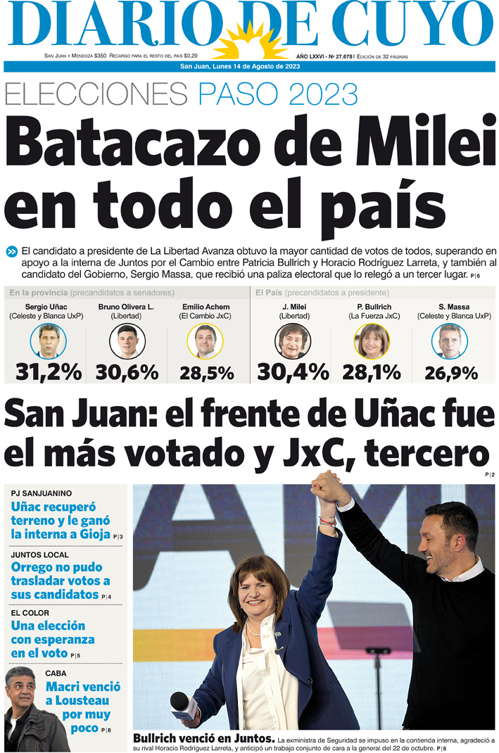 Diario de Cuyo | HOME | Noticias Tapa Edición 14 de Agosto del 2023 Por Redacción Diario de Cuyo 14/08/2023 · 0:00 Escuchar la noticia Escuchar la noticia Your browser doesn’t support HTML5 audio Ver los comentarios ›