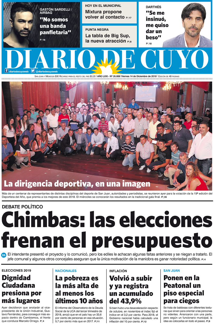 Diario de Cuyo | HOME | Noticias | Tapa Edición Tapa Edición 14 de Diciembre 2018 Por Redacción Diario de Cuyo 13/12/2018 · 0:00 Escuchar la noticia Escuchar la noticia Your browser doesn’t support HTML5 audio Tapa Edición Ver los comentarios ›