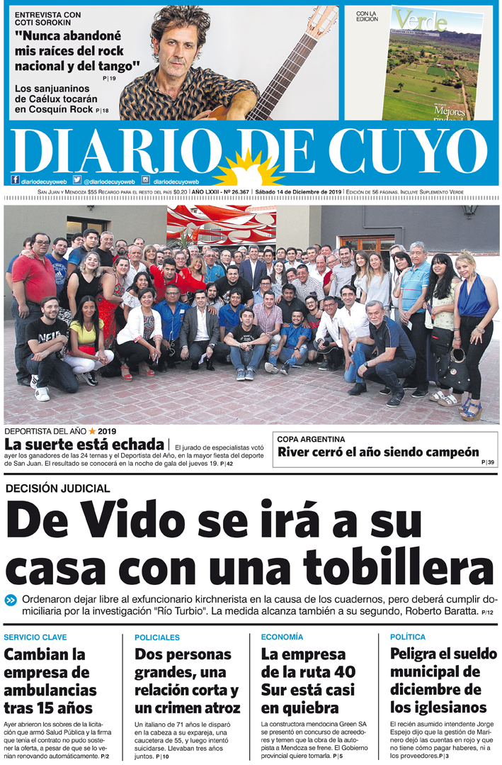 Diario de Cuyo | HOME | Noticias | Tapa Edición Tapa Edición 14 de Diciembre 2019 Por Redacción Diario de Cuyo 14/12/2019 · 0:00 Escuchar la noticia Escuchar la noticia Your browser doesn’t support HTML5 audio Tapa Edición Ver los comentarios ›