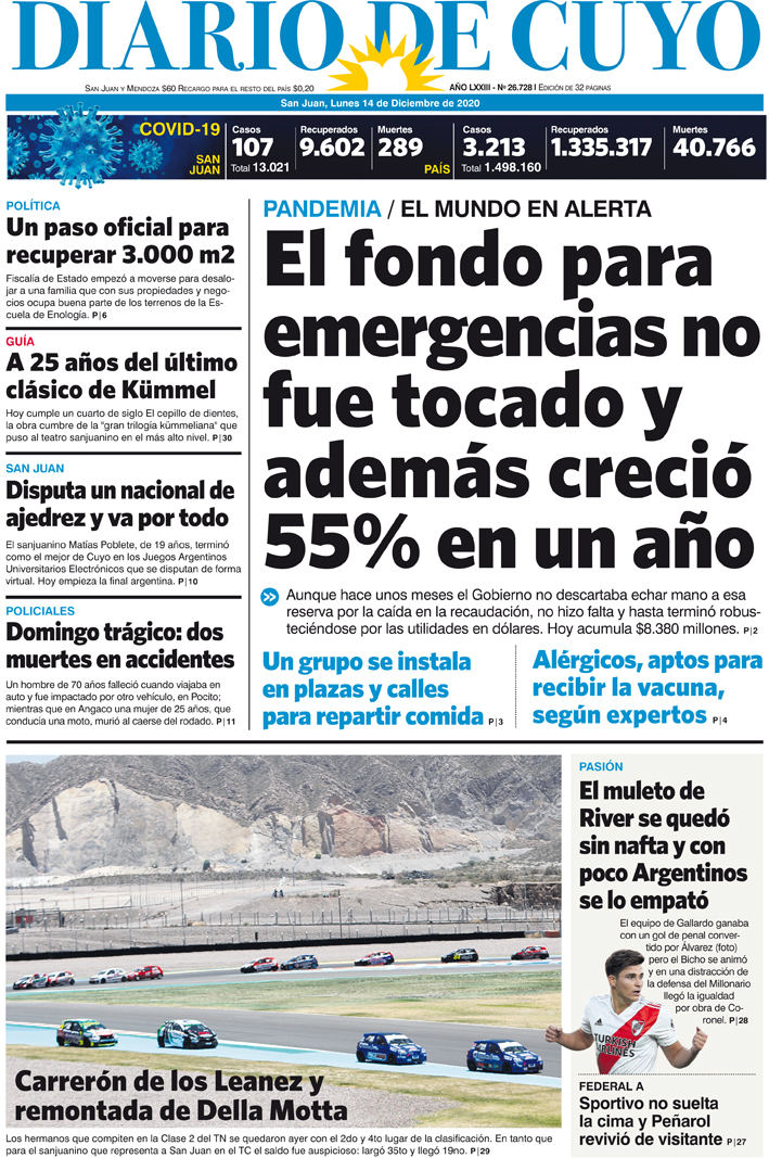 Diario de Cuyo | HOME | Noticias | Tapa Edición Tapa Edición 14 de Diciembre de 2020 Por Redacción Diario de Cuyo 13/12/2020 · 0:00 Escuchar la noticia Escuchar la noticia Your browser doesn’t support HTML5 audio Tapa Edición Ver los comentarios ›