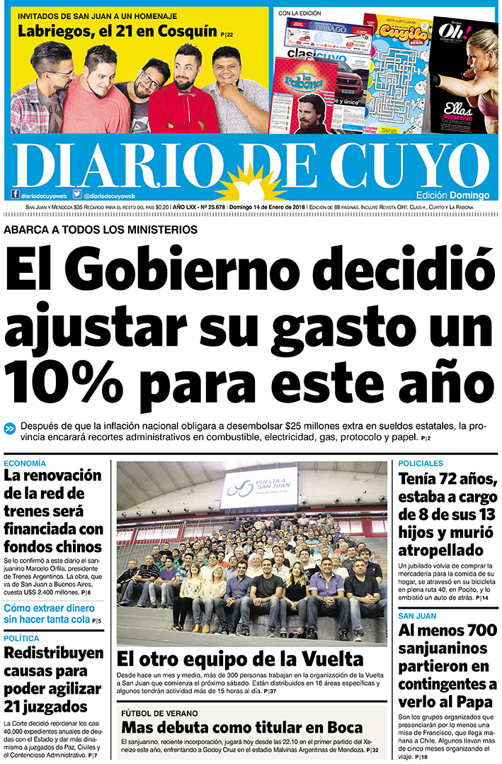 Diario de Cuyo | HOME | Noticias | Tapa Edición Tapa Edición 14 de Enero del 2018 Por Redacción Diario de Cuyo 14/01/2018 · 0:00 Escuchar la noticia Escuchar la noticia Your browser doesn’t support HTML5 audio Tapa Edición Ver los comentarios ›