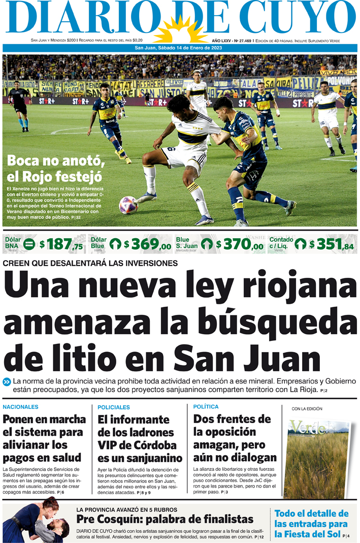 Diario de Cuyo | HOME | Noticias Tapa Edición 14 de Enero del 2023 Por Redacción Diario de Cuyo 14/01/2023 · 0:00 Escuchar la noticia Escuchar la noticia Your browser doesn’t support HTML5 audio Ver los comentarios ›