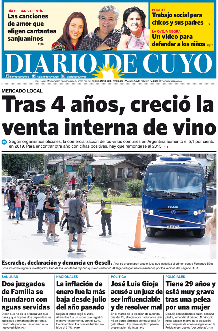Diario de Cuyo | HOME | Noticias | Tapa Edición Tapa Edición 14 de Febrero de 2020 Por Redacción Diario de Cuyo 14/02/2020 · 0:00 Escuchar la noticia Escuchar la noticia Your browser doesn’t support HTML5 audio Tapa Edición Ver los comentarios ›