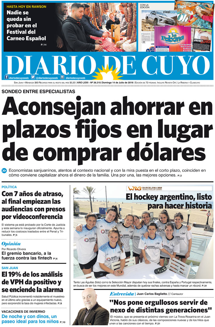 Diario de Cuyo | HOME | Noticias | Tapa Edición Tapa Edición 14 de Julio 2019 Por Redacción Diario de Cuyo 13/07/2019 · 0:00 Escuchar la noticia Escuchar la noticia Your browser doesn’t support HTML5 audio Tapa Edición Ver los comentarios ›