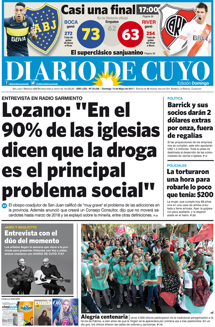Diario de Cuyo | HOME | Noticias Tapa Edición 14 de Mayo de 2017 Por Redacción Diario de Cuyo 14/05/2017 · 0:00 Escuchar la noticia Escuchar la noticia Your browser doesn’t support HTML5 audio Ver los comentarios ›