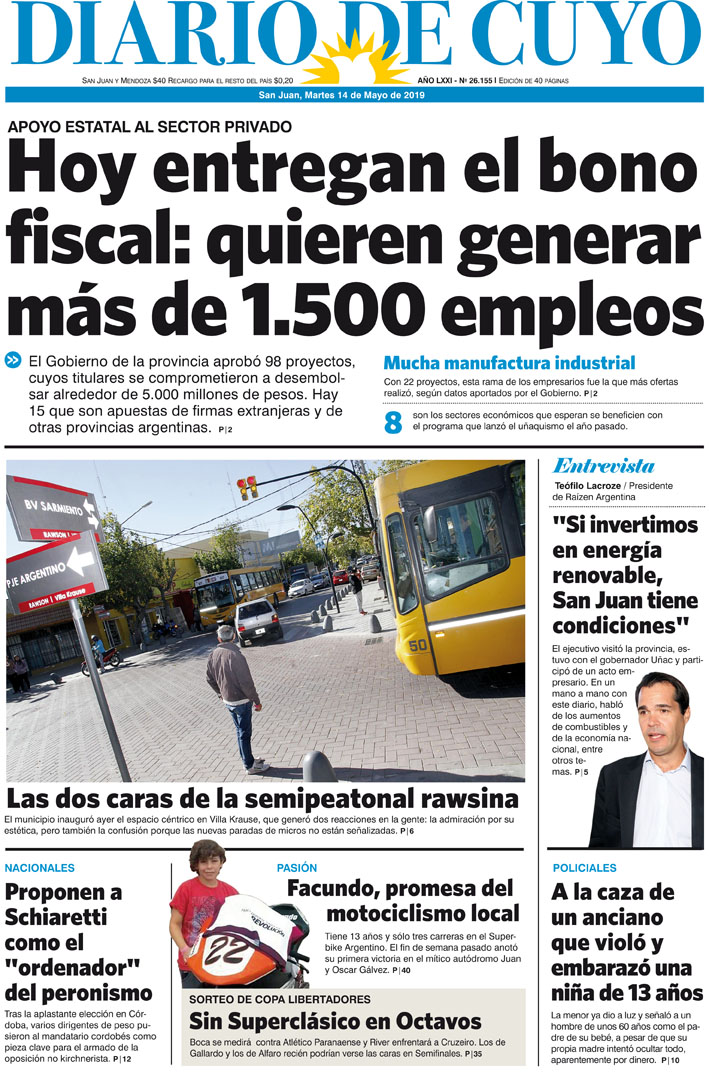 Diario de Cuyo | HOME | Noticias | Tapa Edición Tapa Edición 14 de Mayo de 2019 Por Redacción Diario de Cuyo 13/05/2019 · 0:00 Escuchar la noticia Escuchar la noticia Your browser doesn’t support HTML5 audio Tapa Edición Ver los comentarios ›