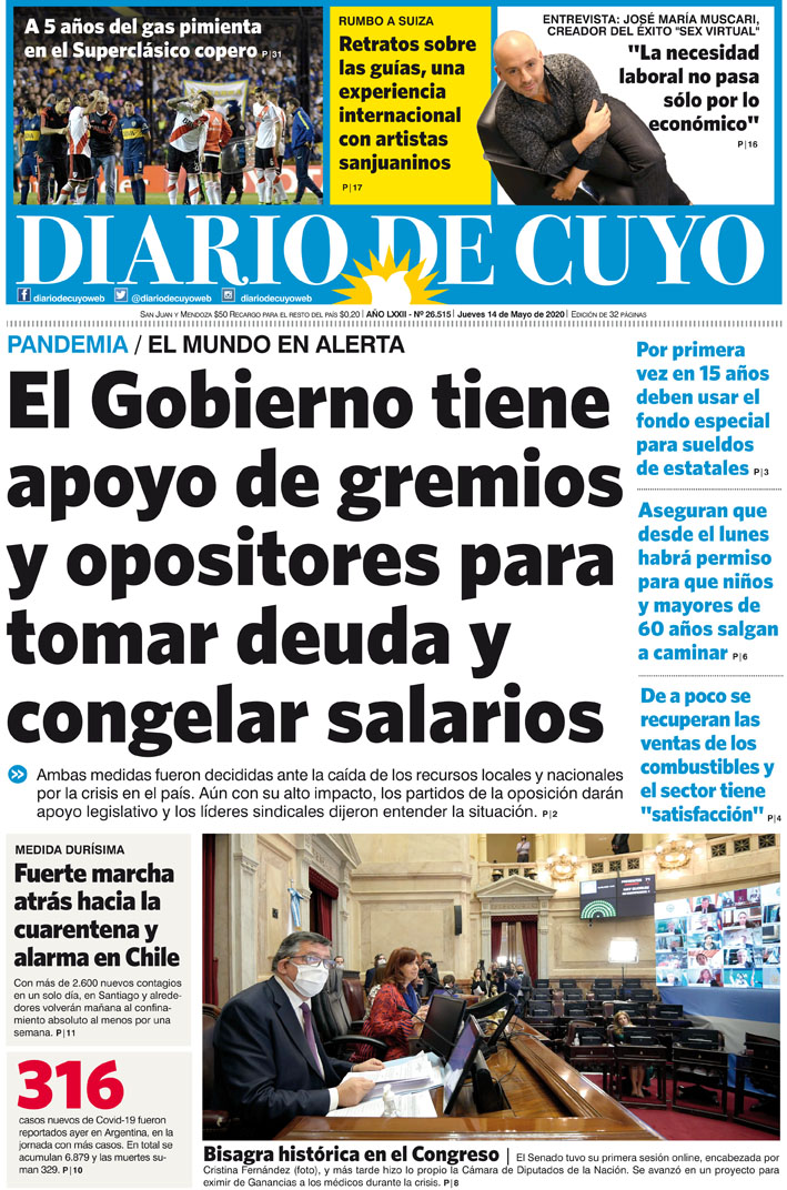 Diario de Cuyo | HOME | Noticias Tapa Edición 14 de Mayo del 2020 Por Redacción Diario de Cuyo 13/05/2020 · 0:00 Escuchar la noticia Escuchar la noticia Your browser doesn’t support HTML5 audio Ver los comentarios ›