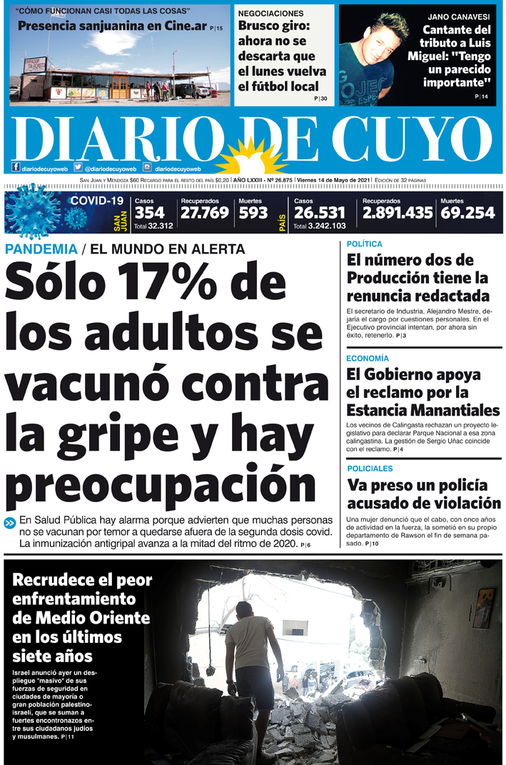Diario de Cuyo | HOME | Noticias Tapa Edición 14 de Mayo del 2021 Por Redacción Diario de Cuyo 13/05/2021 · 0:00 Escuchar la noticia Escuchar la noticia Your browser doesn’t support HTML5 audio Ver los comentarios ›