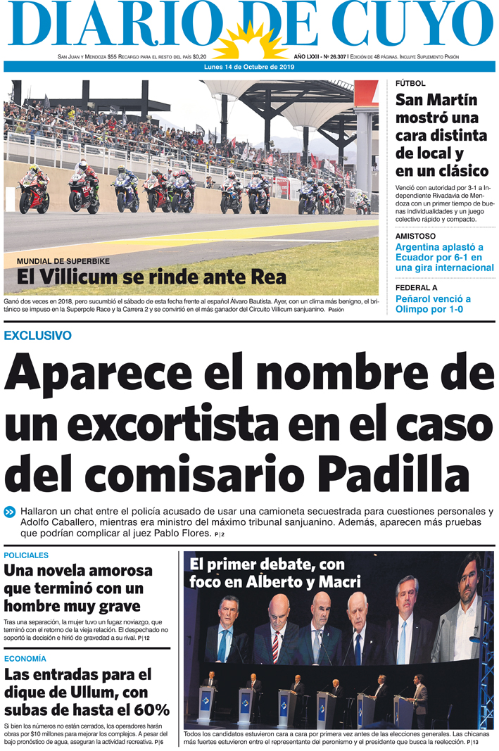 Diario de Cuyo | HOME | Noticias | Tapa Edición Tapa Edición 14 de Octubre 2019 Por Redacción Diario de Cuyo 14/10/2019 · 0:00 Escuchar la noticia Escuchar la noticia Your browser doesn’t support HTML5 audio Tapa Edición Ver los comentarios ›