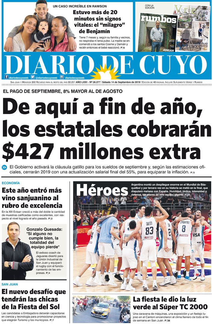 Diario de Cuyo | HOME | Noticias Tapa Edición 14 de Septiembre 2019 Por Redacción Diario de Cuyo 14/09/2019 · 0:00 Escuchar la noticia Escuchar la noticia Your browser doesn’t support HTML5 audio Ver los comentarios ›