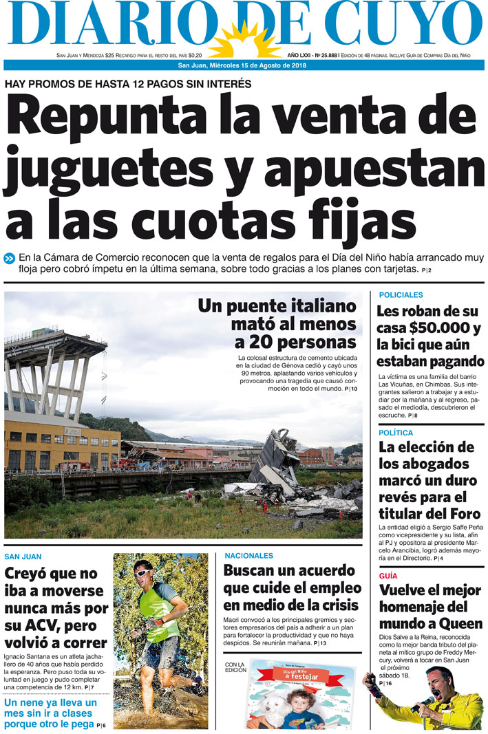 Diario de Cuyo | HOME | Noticias | Tapa Edición Tapa Edición 15 de Agosto 2018 Por Redacción Diario de Cuyo 14/08/2018 · 0:00 Escuchar la noticia Escuchar la noticia Your browser doesn’t support HTML5 audio Tapa Edición Ver los comentarios ›